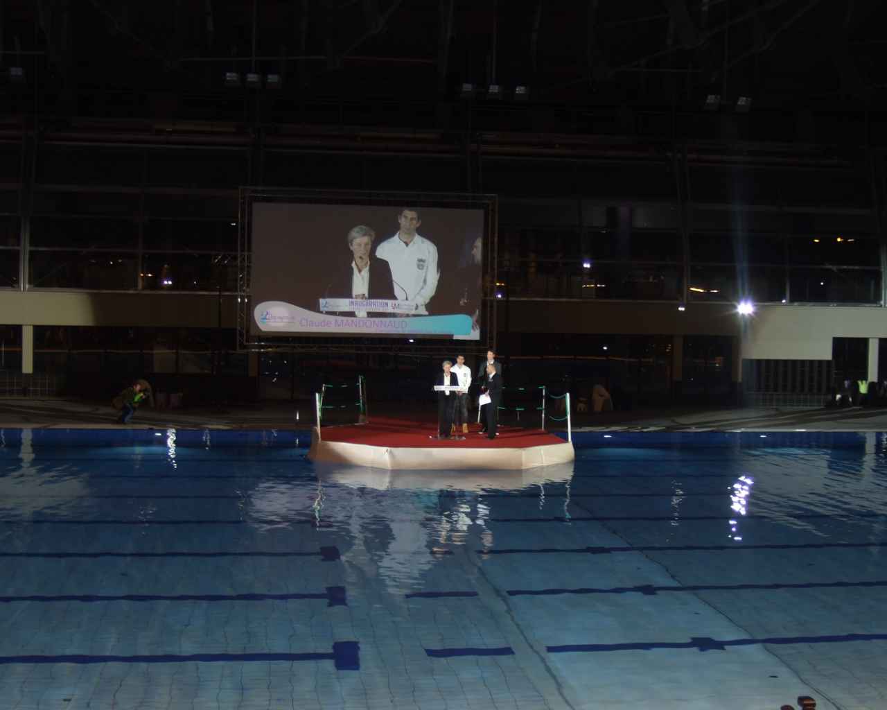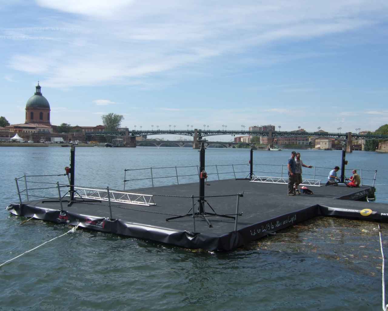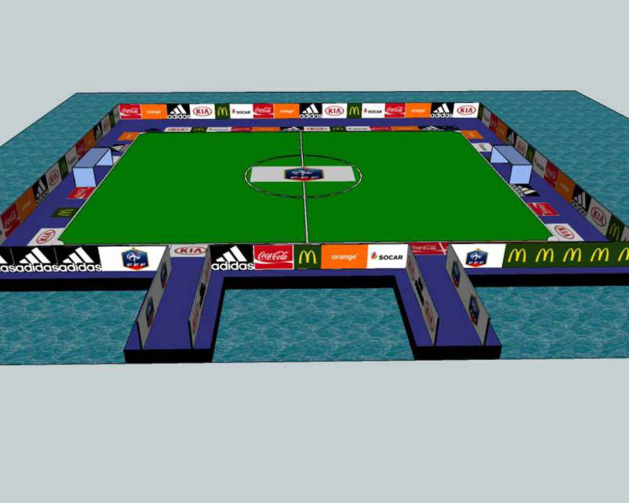 Nous installons des estrades sur l’eau pour l’inauguration de stades nautiques et des terrains de foot flottants.