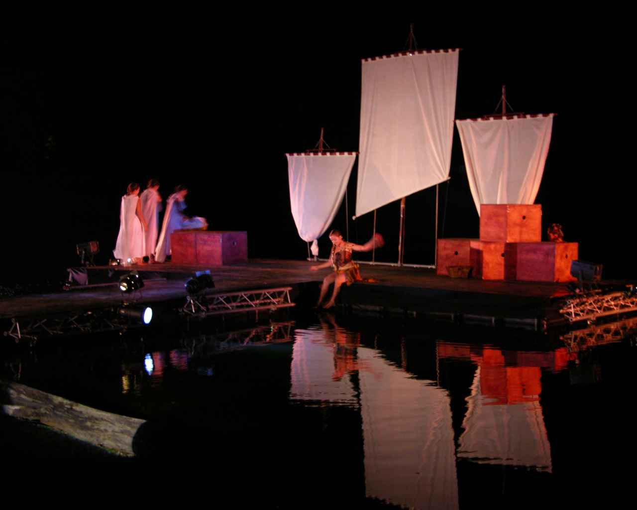 Depuis l'an 2000, Spectacles en cabotage poursuit son investigation dans l'espace "eau" afin de révéler les paysages naturels et inventer un nouveau territoire de créations et d'maginaires artistiques. Notre réflexion sur la circulation des oeuvres et leur diffusion adaptées à l'environnement aquatique est à l'origine de la conception de scènes flottantes et la production de spectacles vivants avec l'eau comme dessus de scène. Spectacles en cabotage assure des compétences doubles de prestations de services techniques et de direction événementielle :