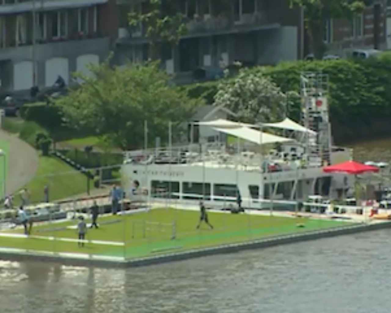 Inspiré d'un mini-terrain sur l'île de Panyee en Thaïlande, la Fun zone est le premier équipement sportif flottant en Europe pour un événement européen ! C'est en Belgique, à Namur, sur la Meuse que ce projet a été possible avec la réunion de 2 autres partenaires :'Charlie's Factory Event à Namur, Marinefloor Europe.